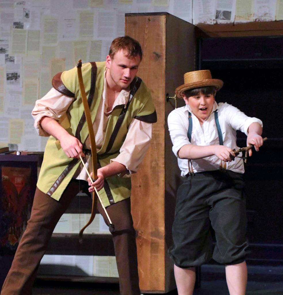 (Photo by Keith J. Krueger) Zack Underwood plays Robin Hood, left, and Michael Turpin plays Tom Sawyer in “The Enchanted Bookshop.”