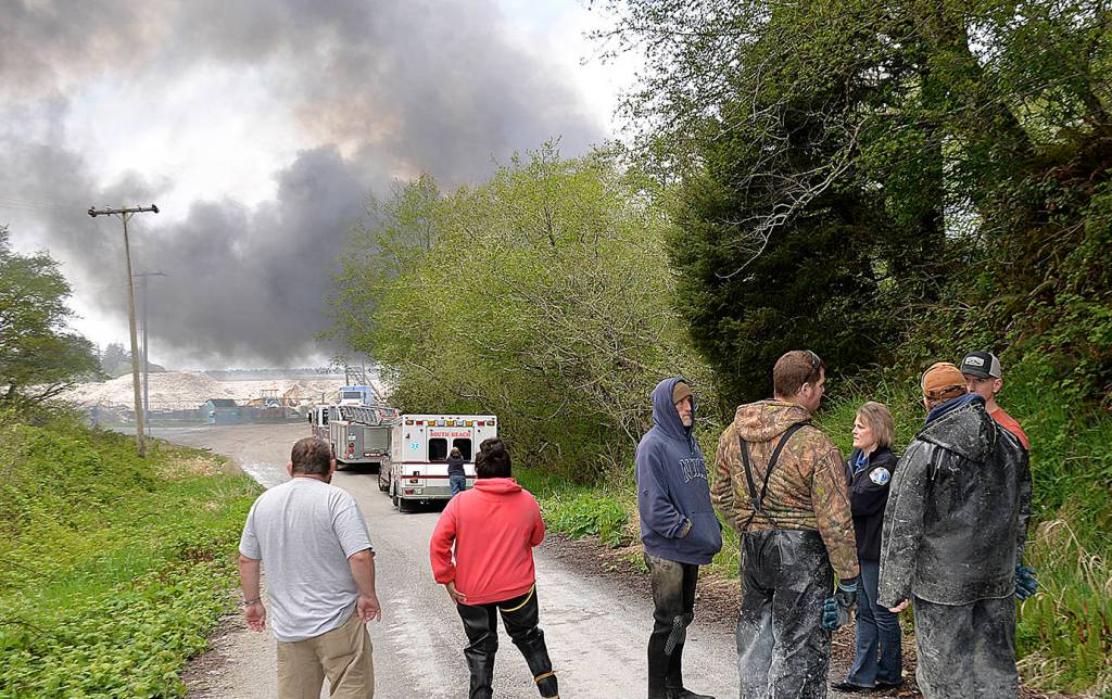 Thick black smoke poured from the structure, and flames were visible from State Route 105. Employees at the scene reported they believed everyone was able to get out safely as they stood uphill on Old Westport Road looking over the burning structure where they had been working just a few minutes earlier. Two witnesses reported seeing flames and smoke from State Route 105 near the piles of oyster shells behind the Ocean Spray cranberry facility as they traveled from Westport to Aberdeen. The smoke was also reportedly visible from the Chehalis River Bridge in Aberdeen.