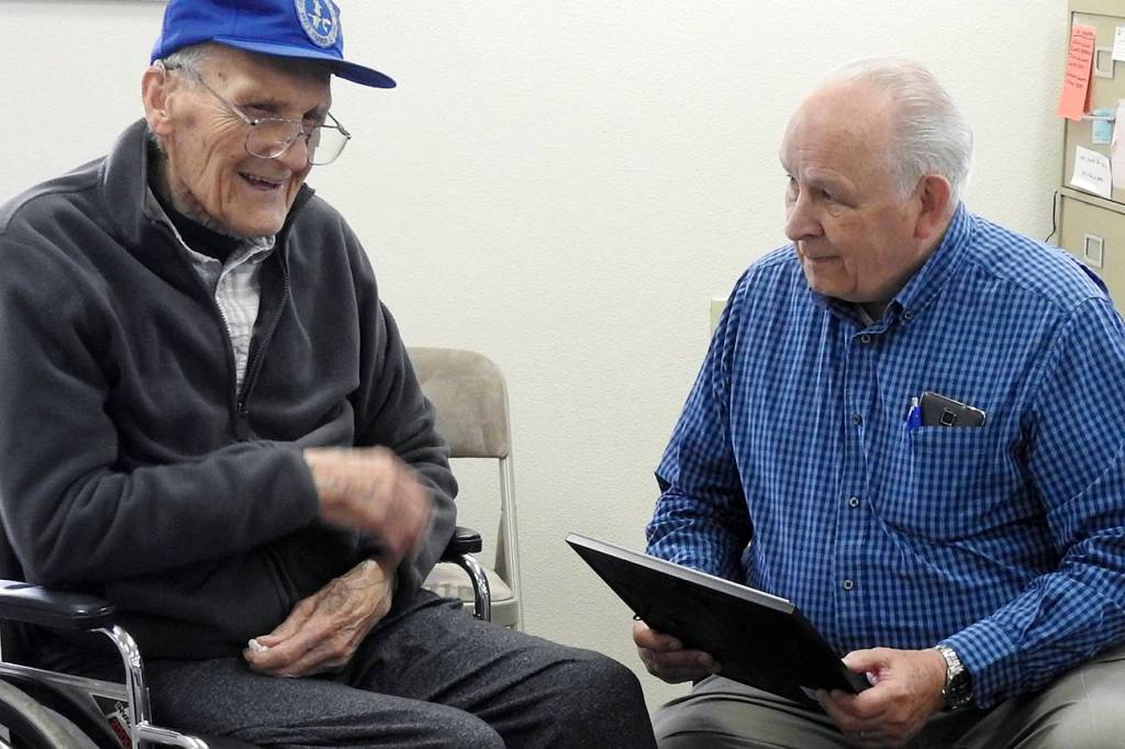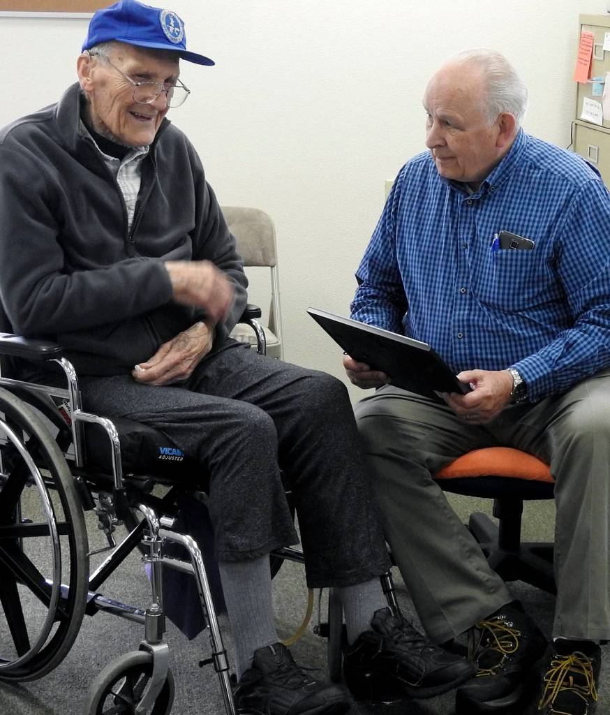 On Friday, less than a week before Lou’s 99th birthday, Maryann drove him from Pacific Care to the clothing bank for a “visit.” To his surprise, about 25 people greeted him there for a private dedication ceremony.