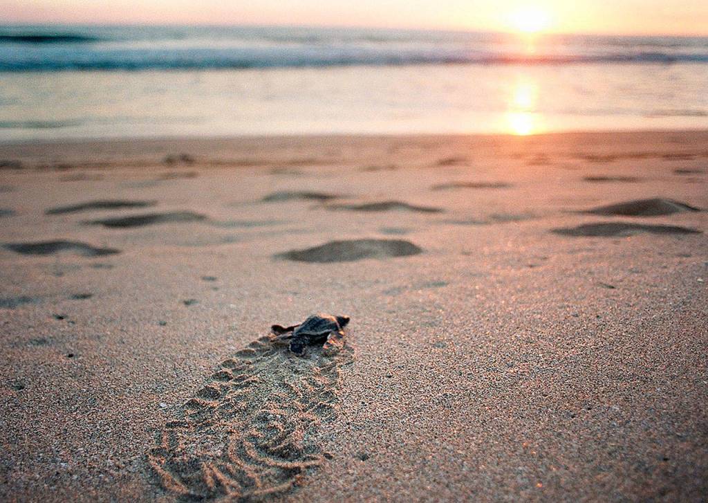A Leatherback sea turtle hatchling makes a mad dash to the sea across the sand at Playa Grande, Costa Rica, in a 2003 file image. Despite strict protections off the West Coast, leatherback turtles are in danger in other parts of the Pacific. (Ken Weiss/Los Angeles Times)