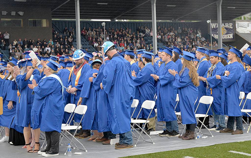 Nearly 200 Grays Harbor College students were at Stewart Field in Aberdeen Friday to accept their diplomas at the school’s 89th commencement ceremony, part of the largest graduating class in the school’s history.