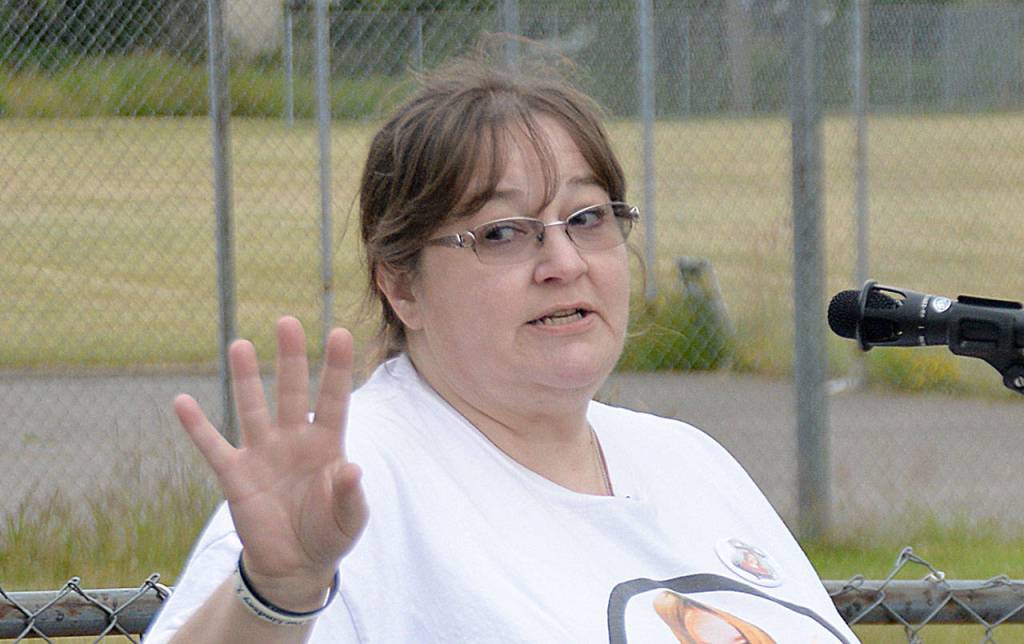 As lighting flashed and thunder roared in the skies over McCleary Wednesday evening, Melissa Baum spoke to dozens of candle-holding community members at the dedication of her daughter’s remembrance garden at Beerbower Park.
