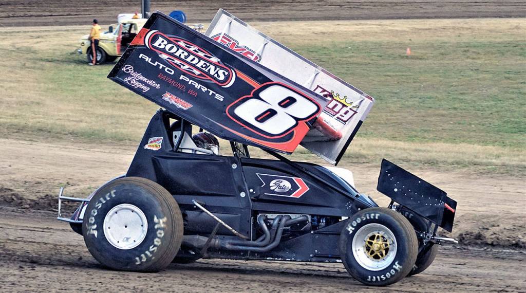 Jay Cole of Shelton and Raymond’s Devon Borden raced side-by-side to the green flag in the 25 lap 360 Sprint Car feature.