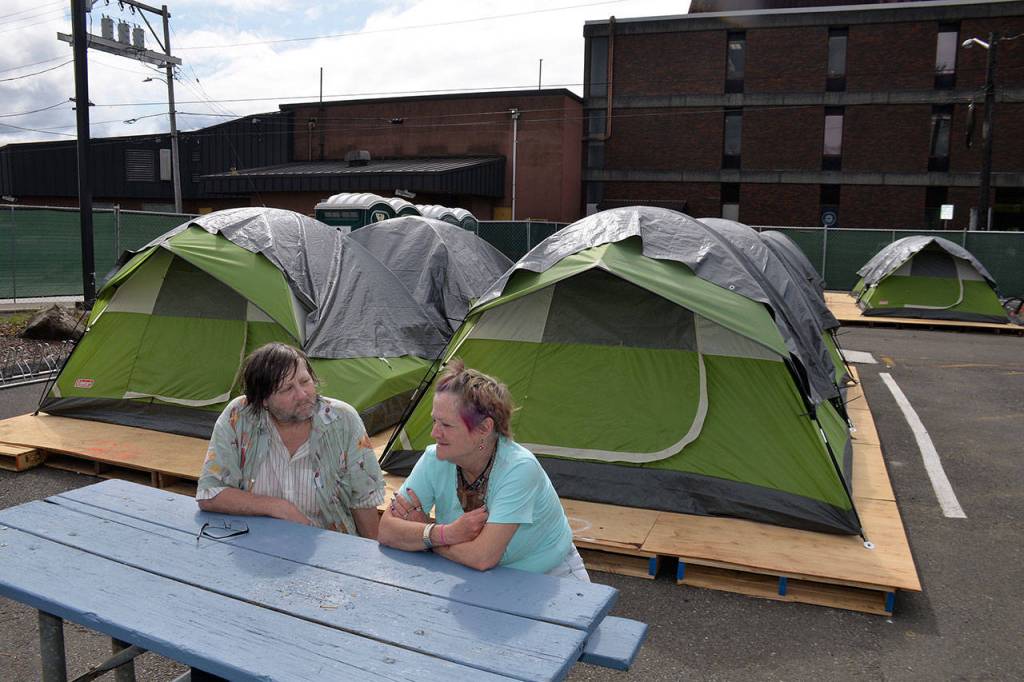 A couple days before the city began clearing the property, the City Council agreed to establish a temporary overnight tent shelter in the parking lot behind City Hall. It started with 38 tents registered and bought by the city, but it quickly hit full capacity, and the city expanded it to 43 tents supporting 55 individuals.
