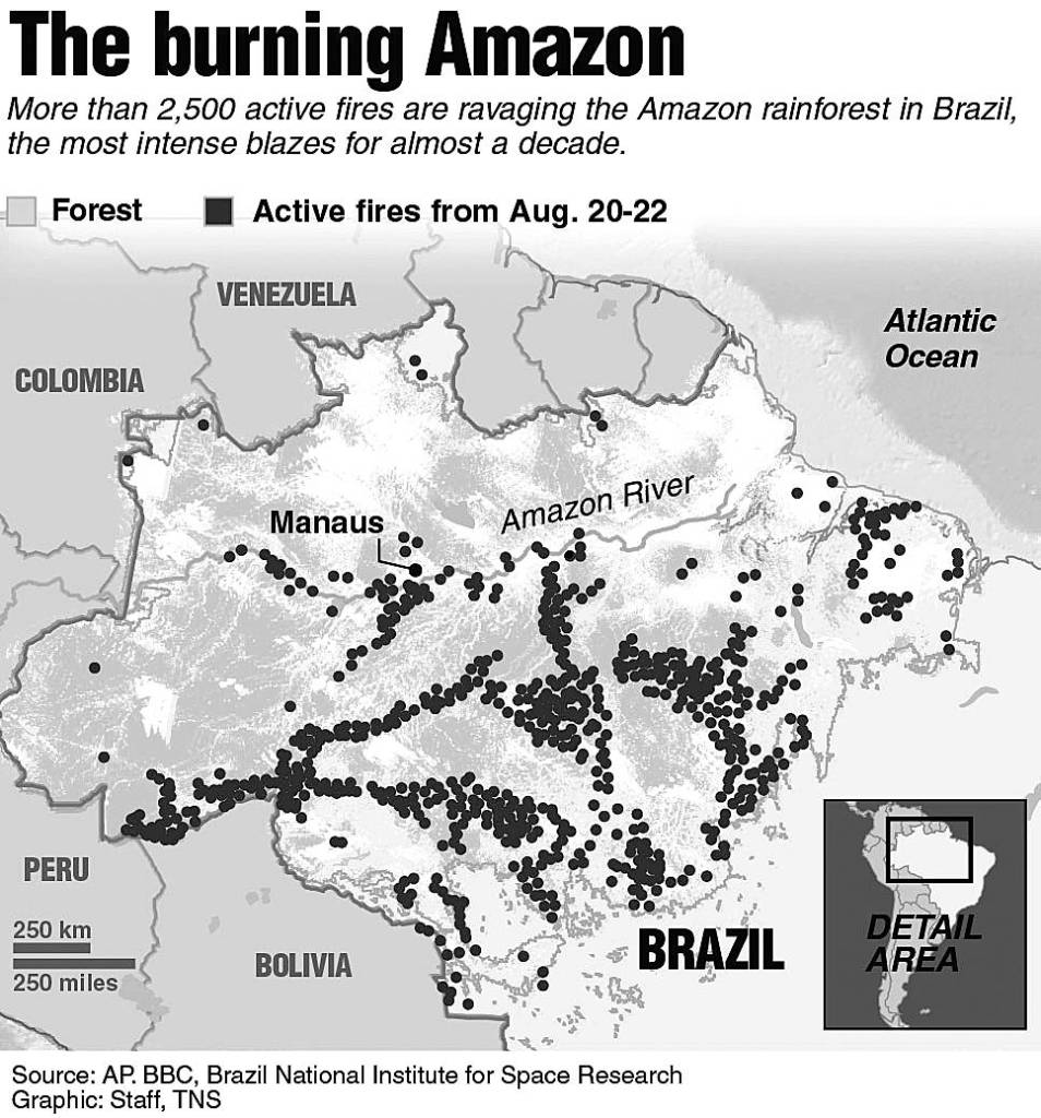 Left to nature, the Amazon rarely burns. But INPE has counted more than 25,000 blazes in the Amazon in August alone. The smoke grew so thick it cast the city of Sao Paulo, which lies more than 1,000 miles away, into daytime darkness.