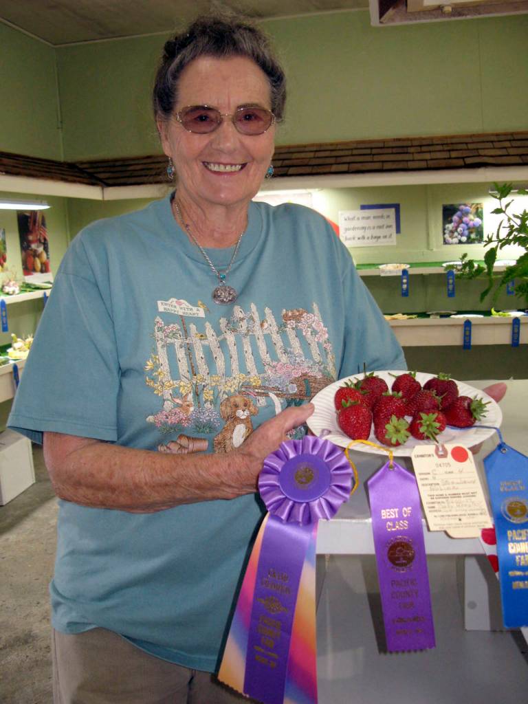 Betty Hampton was named the Grand Champion in Fruits & Vegetables at the Pacific County Fair for her strawberries. She was awarded $50 from Sea Crop. The Reserve Grand Champion was Deklan Christen, a youth gardener, who entered his pickling cucumbers.