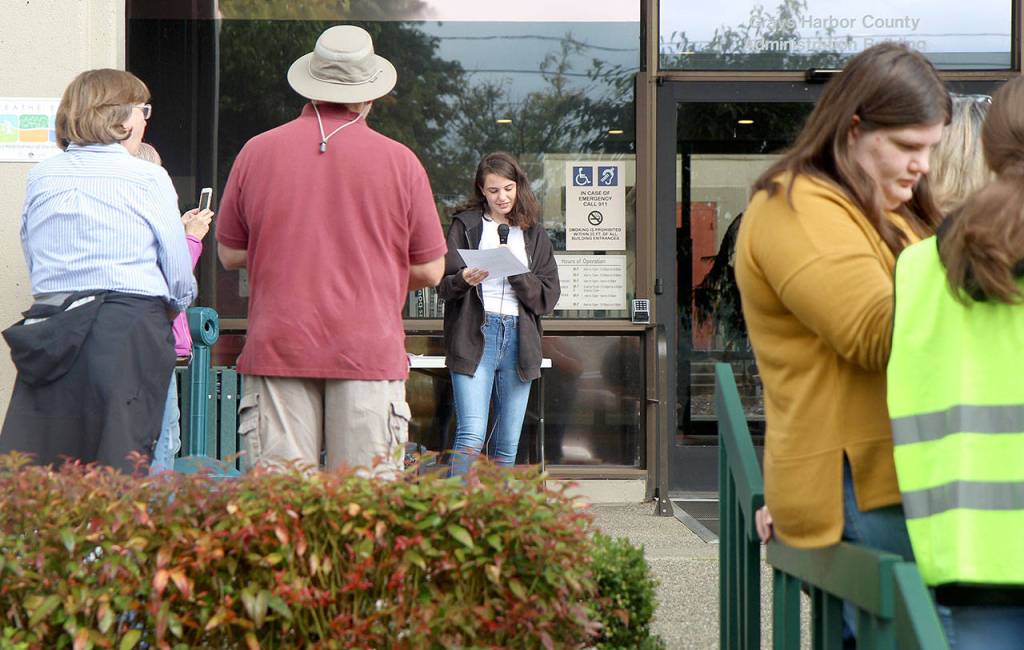 They gathered in front of the Grays Harbor County administrative building at the northwest corner of Broadway Avenue and Main Street as part of a global movement of climate strikes. The Washington Post was reporting Friday that millions of people around the world were taking part in similar protests, which were organized by youths.