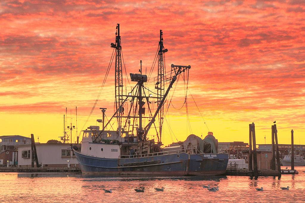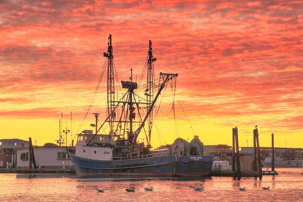 The Jeanne Arain out of Garibaldi, Oregon, sits docked at the Westport Marina against the backdrop of a spectacular sunset on Tuesday night. (Kris Cox/Lost River Photography)
