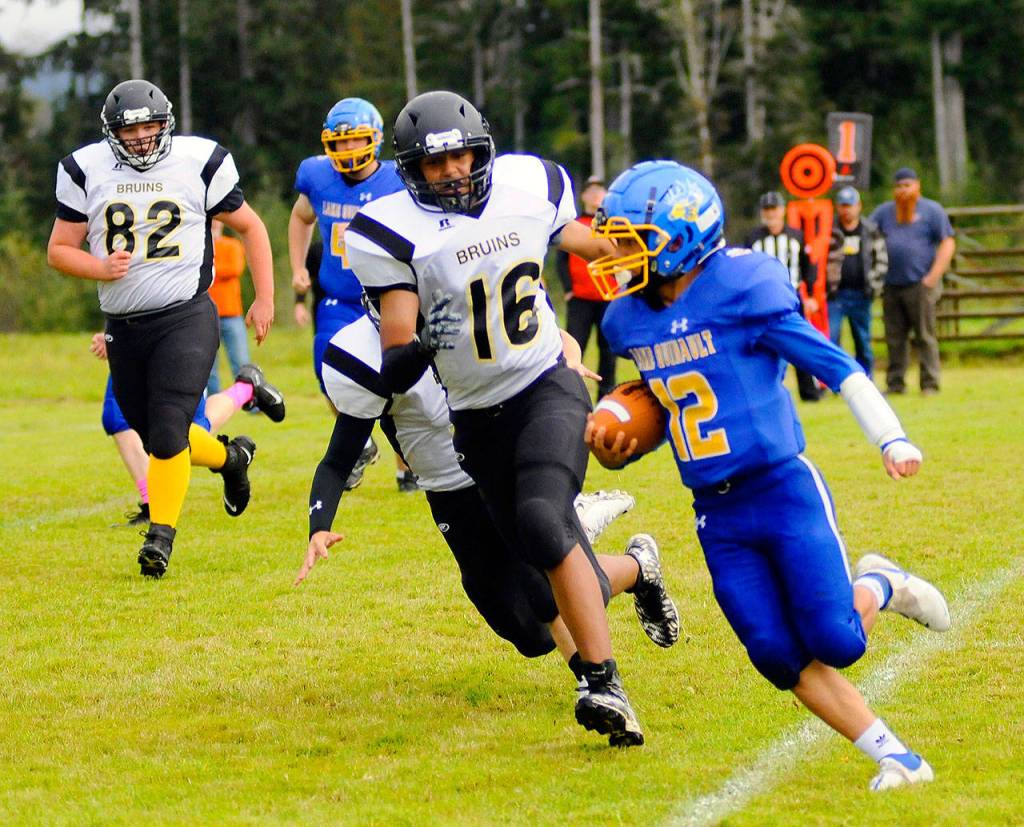 The final score wasn’t much of a concern for Lake Quinault senior Kalon Neeland, who was one of the few players on the roster who had played the game at the middle-school level. Neeland said he was just happy to have the pads on again.