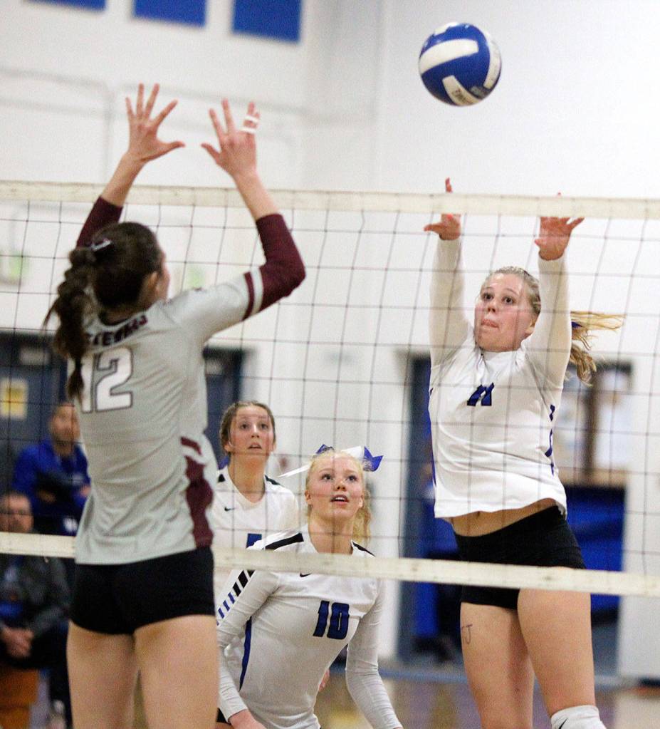 “They had some amazing ups and never quit. They kept on fighting. Jalyn (Sackrider), Ella (Moore) and Kayla (Aho) all had great ups,” she said. “It was definitely a major team effort and everyone really did their part tonight.”