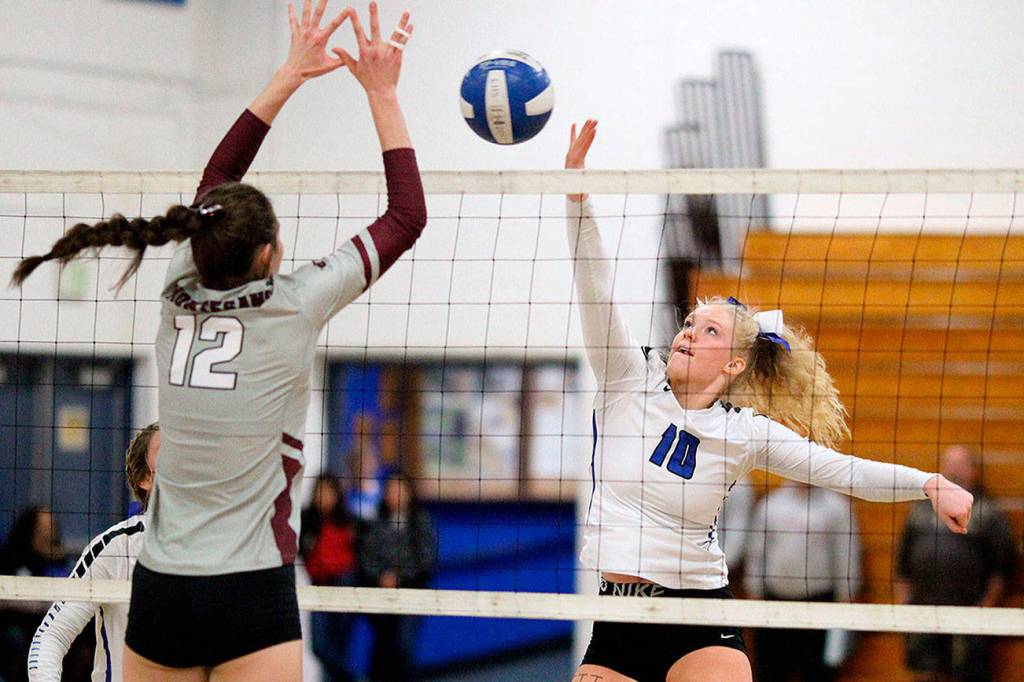 The Grizzlies’ Carsyn Munger stood out defensively in the match with her net play and Hailey Lawrence had 12 digs in the contest for Hoquiam.