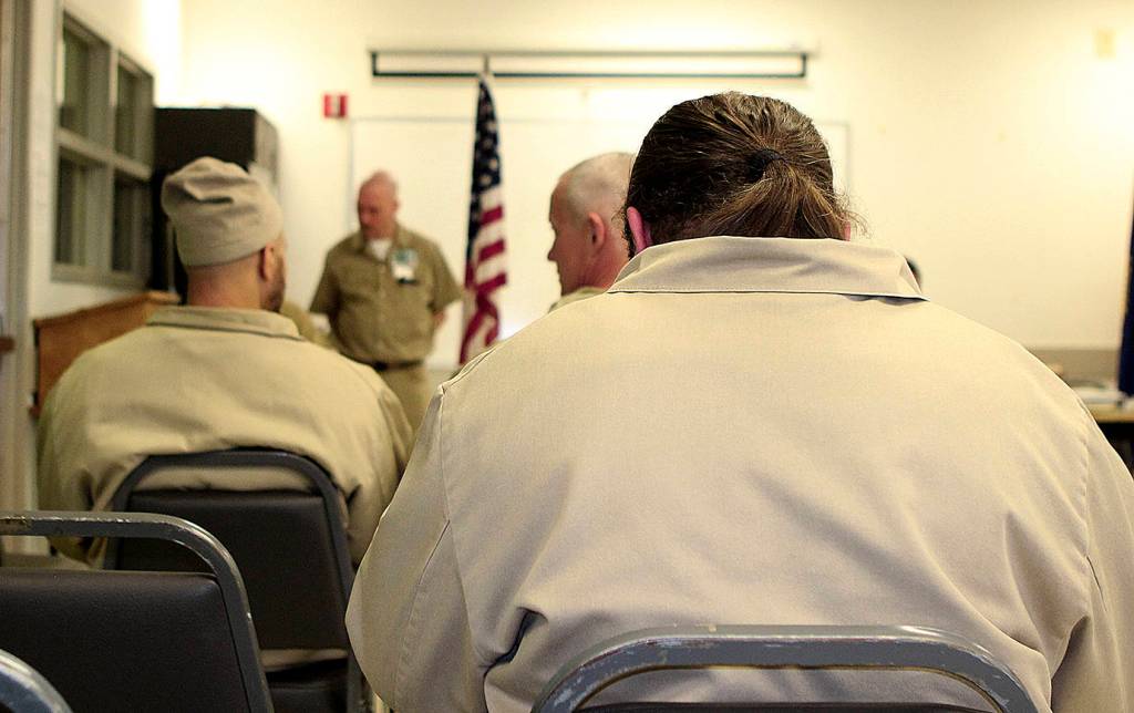 Many of the veterans who attend the meetings at Stafford Creek also live in the prison’s veteran pod. To be eligible to live in the veterans pod, an inmate needs to have served in the military, not have a dishonorable discharge status and no major infractions for six months. The Department of Corrections has about 1,200 incarcerated veterans in its 12 prisons. Stafford Creek and Coyote Ridge Corrections Center in Connell have veterans pods.