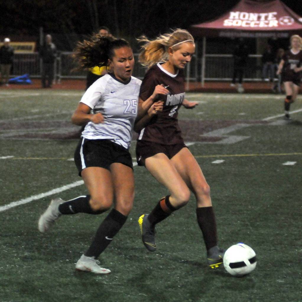 Monte’s defense, which allowed just one goal in regulation and overtime play in three games of last week’s district tournament, bent but didn’t break for two-thirds of the game. Though the Blazers held the time of possession and connected on more passes than the Bulldogs, it rarely turned into opprotune scoring chances. Most of the Blazers’ 10 shots that Monte keeper Ellie Barbo faced were garden variety, sans a hard shot headed for the top shelf that Barbo had to leap to get a hand on, diverting the attempt over the crossbar just before halftime.