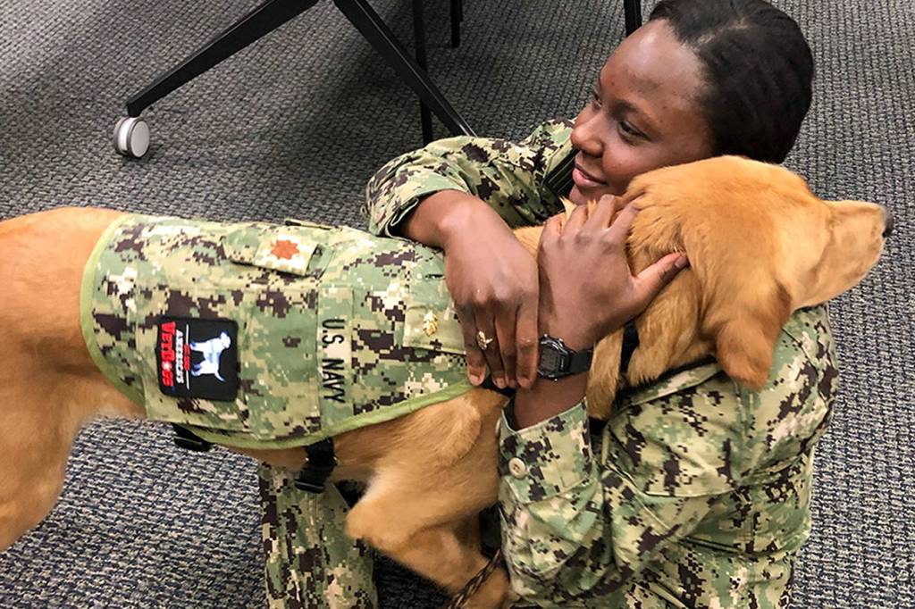 Shetland, not quite 2 years old, is half golden retriever, half Labrador retriever. As of this fall, he is also a lieutenant commander in the Navy and a clinical instructor in the Department of Medical and Clinical Psychology at USUHS.