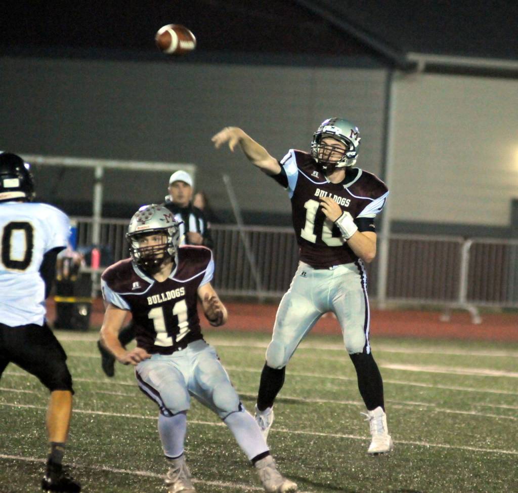 Led by a four-touchdown connection between quarterback Trace Ridgway and wide receiver Sam Winter, the Montesano Bulldogs added Meridian to its long list of handily-defeated foes, routing the Trojans 58-14 in a 1A State Tournament first-round game on Saturday in Montesano.