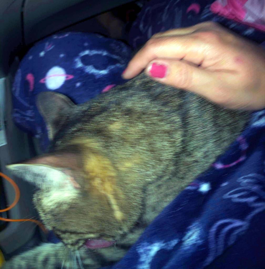As Korra settled down, Teresa posted a call for help on Facebook. It was after 8 p.m., so she knew any nearby animal shelters would be closed for the night; and they were still a long way from home. In response to her post, one of her friends sent them the contact information for Cat Utopia in Pendleton.