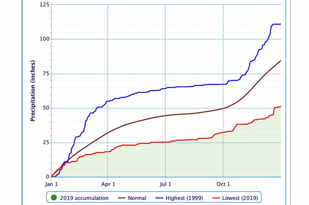 Aberdeen received the lowest annual rainfall since records started being kept in 1891, according to the National Weather Service. The 51.36 inches of rain for 2019 compares to an annual average of 84.25, according to Weather Service figures.