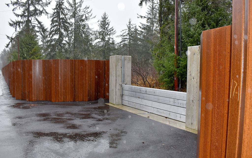 Where sheet pile levee walls intersect streets and driveways, a variety of openings will be incorporated that can be closed if a flood is imminent. These can include fully automated lightweight panels that are bolted into the ground, or can be more primitive gates, said Schmitz. Examples of these are evident along the sheet pile wall along the Wishkah north of Aberdeen. A sheet pile wall, with proper maintenance, has a lifespan of 50-plus years, said Schmitz.