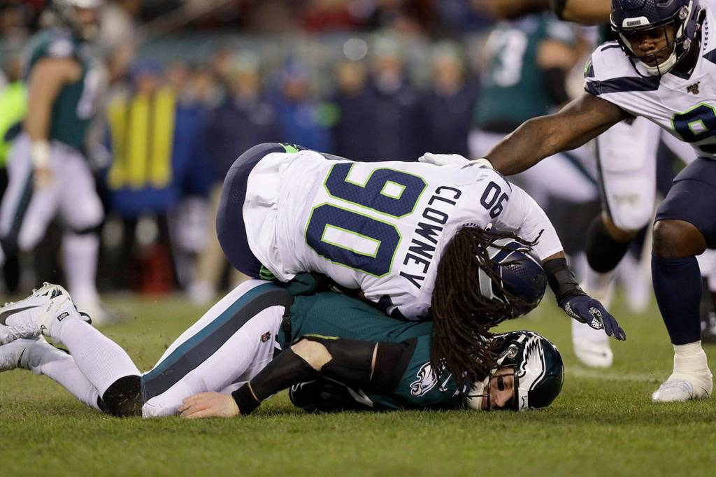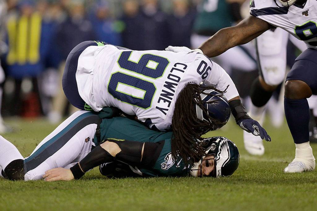 Things I don’t know: 1) Whether Seahawks defensive end Jadeveon Clowney’s hit on Carson Wentz warranted a flag, ejection and/or a fine; 2) whether that hit was the difference in the Seahawks beating the Eagles on Sunday; and 3) whether there was any intent on Clowney’s part beyond simply making a tackle.