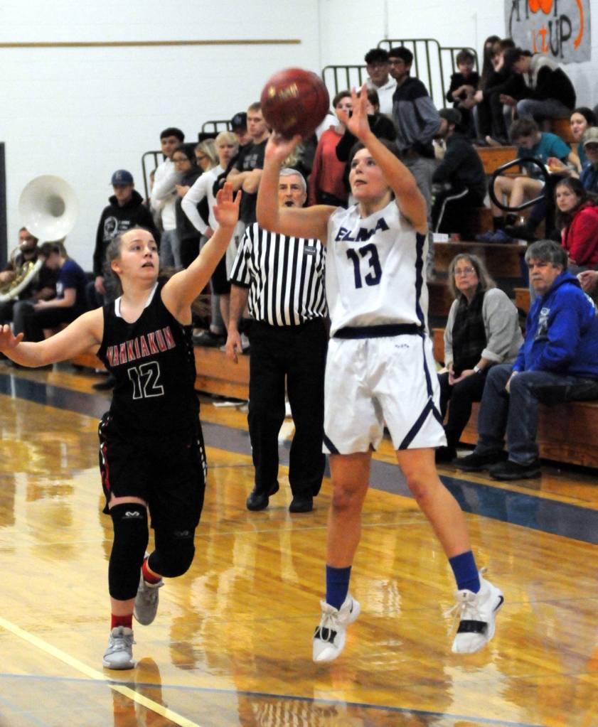 Put in the rare position of having to climb out of a double-digit deficit in the first quarter, Elma used its defense to begin to crawl back into the game. After allowing four 3-pointers and seven field goals in the first quarter, Elma clamped down, allowing just two points through the first four-plus minutes of the second quarter.