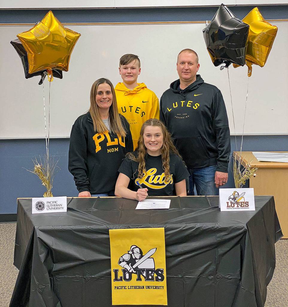 Aberdeen’s Annika Eisele signed a National Letter of Intent on Friday to swim for Pacific Lutheran University in Tacoma next fall.