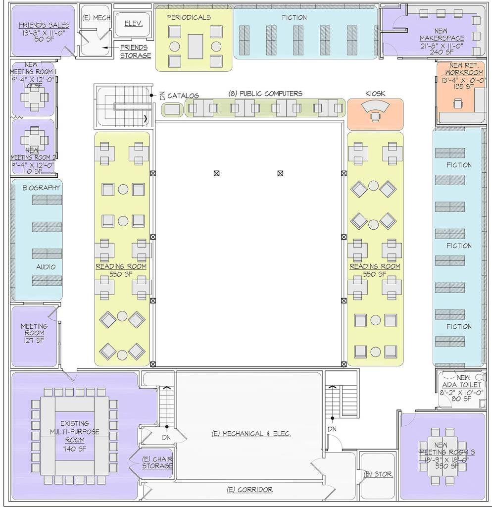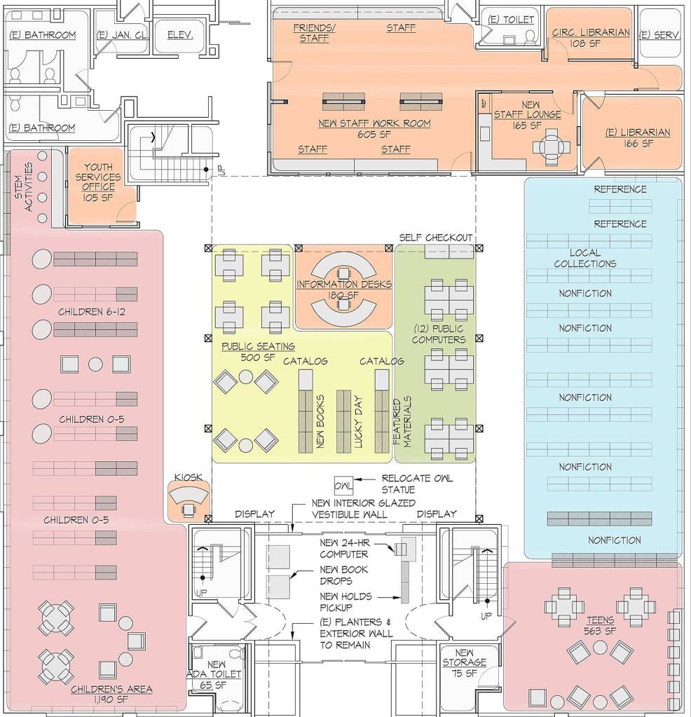 Goals of the project include improvements to lighting, seating and flooring. The interior of the building will be redesigned to meet the current and future needs of the youth area, computer area, digital infrastructure and staff workspaces, according to Reece.