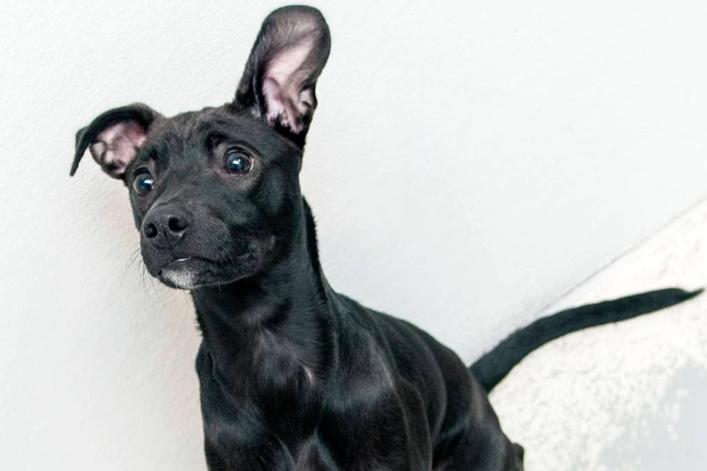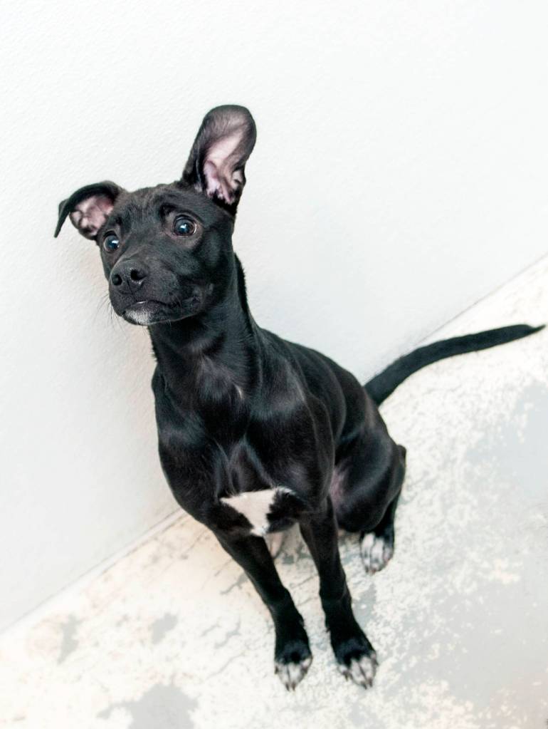 Katie is a young terrier mix puppy. She and her sister, Dalilah, came into the shelter together. Katie is most definitely the more submissive of the two.