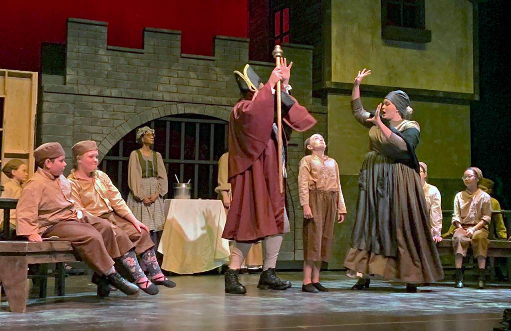He noted that the crew cleared out a prop storage room backstage to create a lounge of sorts for the orphan players. Some of their parents will act as monitors to keep them corralled and reasonably quiet for the long stretch between their appearance in the famous opening scene (“Please, sir, I want some more!”) and the finale.