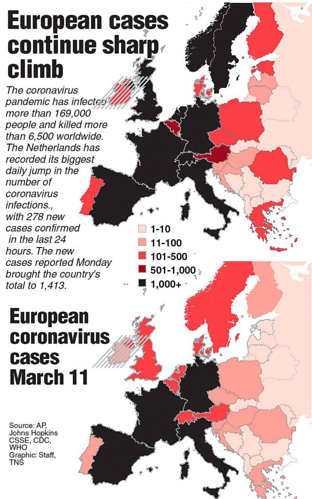 Also Monday, EU finance ministers were considering measures aimed at curbing the economic impact of the coronavirus outbreak, with the commission warning that the bloc’s economy could shrink this year.