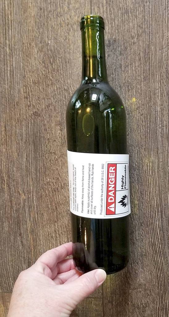 More than 30 cases of hand sanitizer — which equates to about 360 wine bottles — have been dispensed to law enforcement and first responders from the Washington State Patrol, Grays Harbor County, Aberdeen, Montesano, McCleary, Westport and Squaxin Island Tribal Police. Those in law enforcement seemed to be half-joking when they took possession of the hand sanitizer. It came in a standard green 750-milliliter wine bottle emblazoned with a “DANGER – Highly Flammable” sticker of warning.