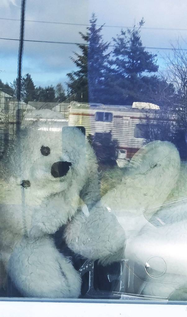 “It was my great-grampa’s when he was little, and he was born in 1903,” Kelly Redford of Grayland said about the bear in her window. It usually sits on her bedside table. In its new perch in her front window, it’s accompanied by the Christmas lights she recently rehung to bring cheer to her neighborhood.