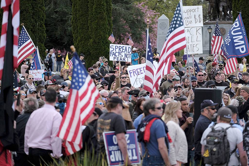 “These are difficult and frustrating times. I understand the urgency of this crisis,” Inslee said. “I support free speech. But crowd counts or speeches won’t determine our course. This isn’t about politics. It can only be about doing what is best for the health of all Washingtonians.”