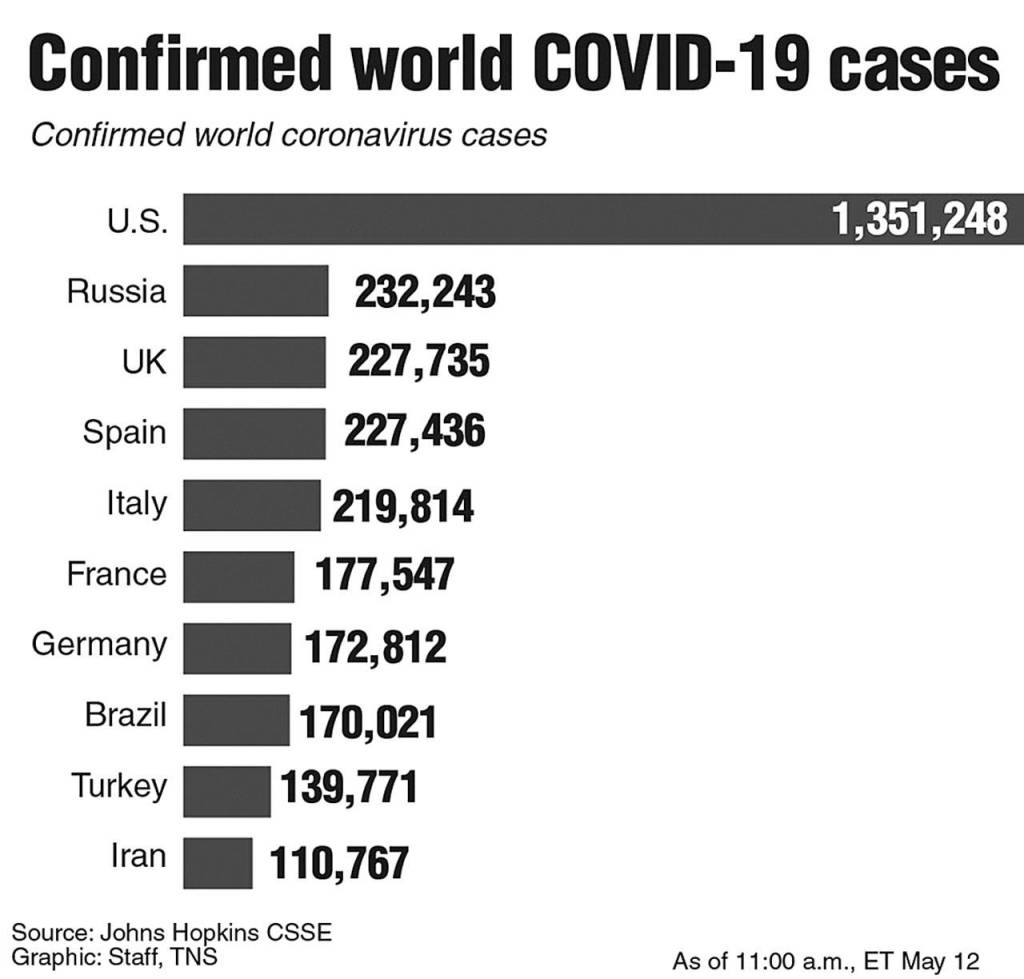 Despite the lockdowns, Russia has reported at least 10,000 new daily infections for the past 10 days, lifting its total to 232,243 and second only to the U.S. At the same time, Russia has one of the world’s lowest mortality rates with COVID-19 listed as the cause of death in only 2,116 cases, leading critics to claim that the government is withholding data.