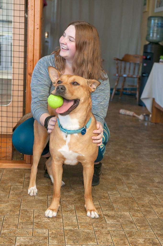 “I love how the volunteers are finding alternative ways to exercise the dogs,” said PAWS board member and official photographer Marcy Merrill. For example, she said, they toss a ball up and down the stairs for Henesey, a young German shepherd mix who’s extremely full of energy. And Pat Pierce, known as the shelter’s “Alpha Dog,” has come up with different ways to hang toys in the play yard to keep things interesting for the dogs.