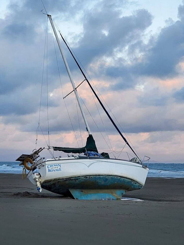 His sailboat, the Crown Royale, ran ashore on Washaway Beach May 19 as he was heading up the coast to Alaska. The self-proclaimed “tramp” has been stranded since then, digging around the boat each day and trying to pull it a little farther back toward the sea.