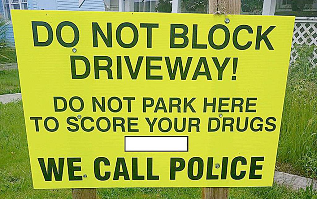 COURTESY HOQUIAM POLICE DEPARTMENT                                 Neighbors of a suspected drug house on Karr Avenue posted this sign. A weeks-long investigation led to the arrest of two men at the house Tuesday.