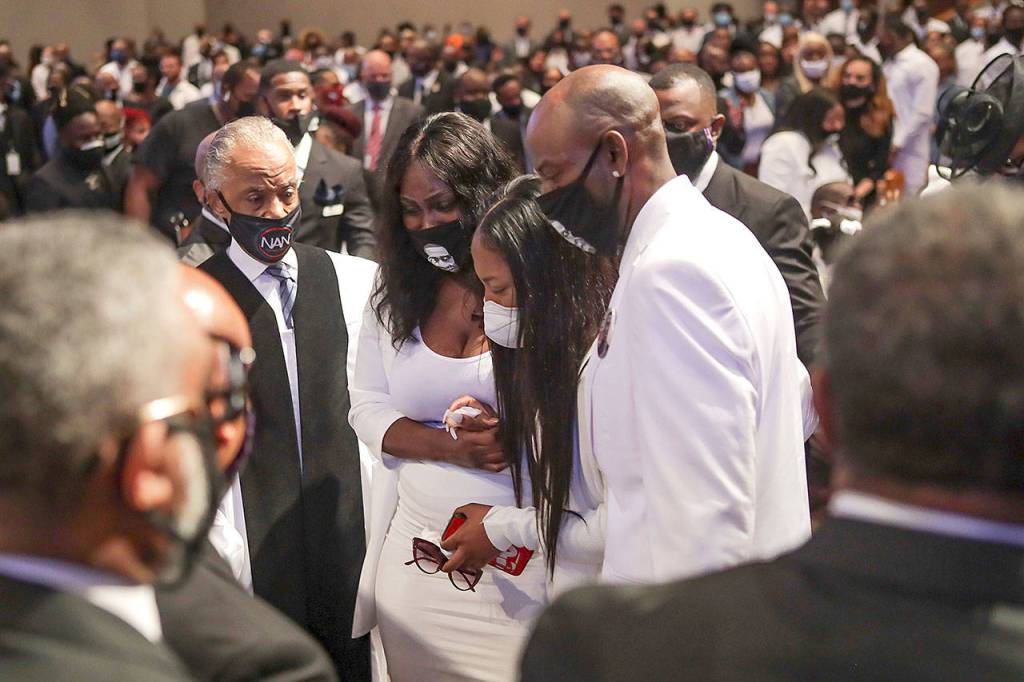 The Rev. Al Sharpton delivered the eulogy for Floyd, 46. Inside the sanctuary of the church on the southwest side of Houston, seats were filled with celebrities, including politicians, singers, pro football players and Hollywood stars. Enormous flower hearts and roses lined the halls.