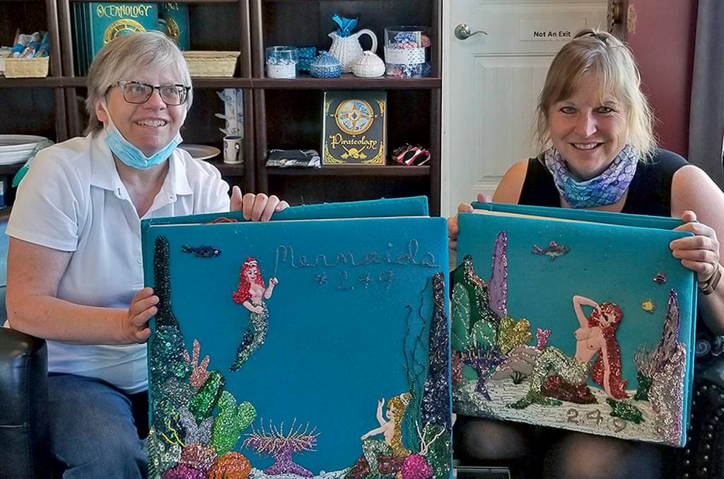 Hoquiam librarian Mary Thornton contacted museum director Kim Roberts about some scrapbooks that had been donated to the library. Each scrapbook features handmade art from an organization called the Mermaids, which was active on Grays Harbor between World War I and the late 1970s. They were a chapter of the Military Order of the Cootiettes, a group of women who volunteered under the auspices of the Veteran’s of Foreign Wars. Their mission was to provide support and comfort to those who had served in the military.