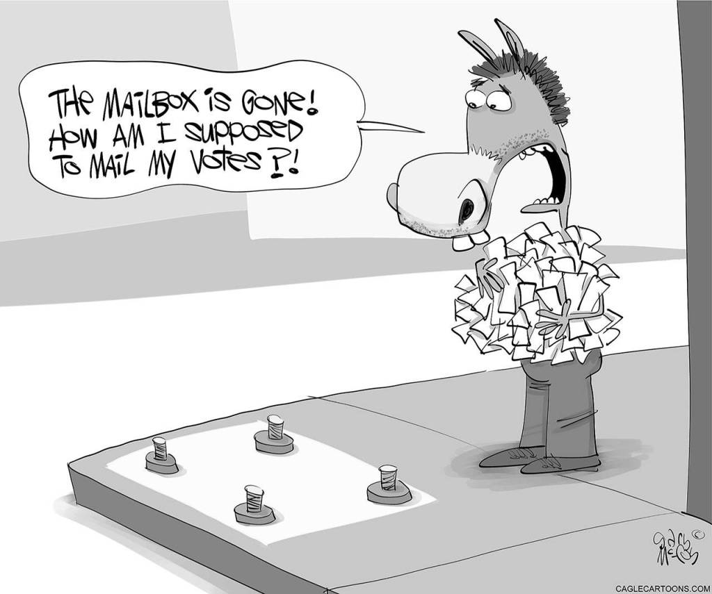 At this rate, Postmaster General Louis DeJoy will be lucky if he isn’t arrested and tried for treason before a people’s tribunal.
