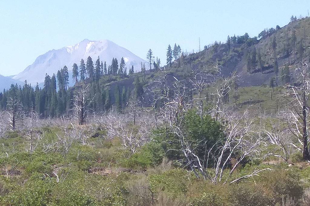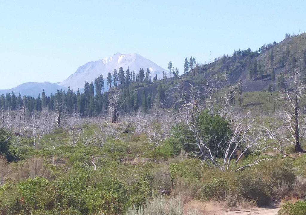 And now you can see Mount Lassen — the southernmost member of the Cascade Range — from places you could never see it before, because there was always a dense, mature forest curtain miles deep blocking that view from motorists on Highway 89. Not anymore. The views of Lassen through the few remaining burned-out tree corpses are rather spectacular, if not sad, these days.