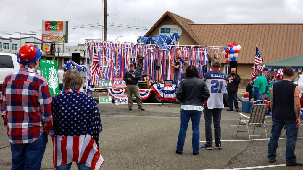 The event featured multiple GOP candidates speaking to several dozen supporters that braved the rain and wet weather to attend the rally hosted by the Save Our Aberdeen Please group and Rainier Lanes.