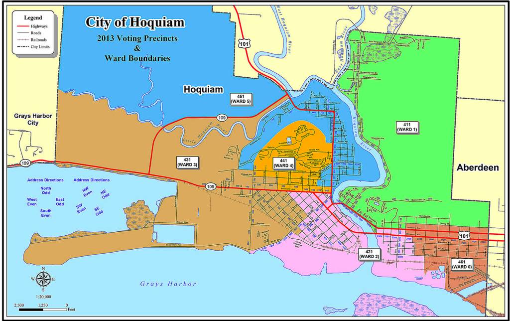 A map of Hoquiam’s wards can be found online at https://cityofhoquiam.com/government/hoquiam-city-council/, scroll to the bottom of the page and click on the “view ward boundary map” link.