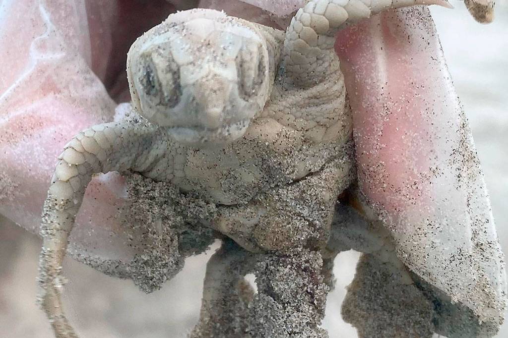 ‘Incredibly rare’ white baby sea turtle pops out of the sand on South Carolina beach