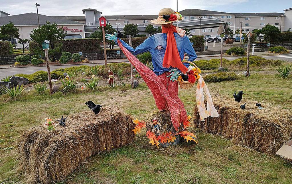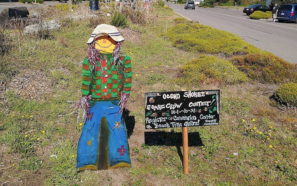 Drive toward the Chance A La Mer beach access in Ocean Shores and in the median in front of the Shilo Inn, in a small community park, stand more than 20 scarecrows, vying for prizes donated by local businesses.
