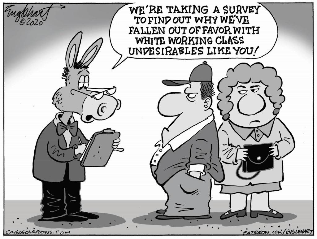 Identity politics merges with elite culturalism, in which some well-meaning Democrats give the impression that because of their superior education and income status, they know what’s best for other people. A political scientist found that between Donald Trump and Hillary Rodham Clinton voters in 2016, “the most dramatic difference … is over sociocultural issues” — not economics.