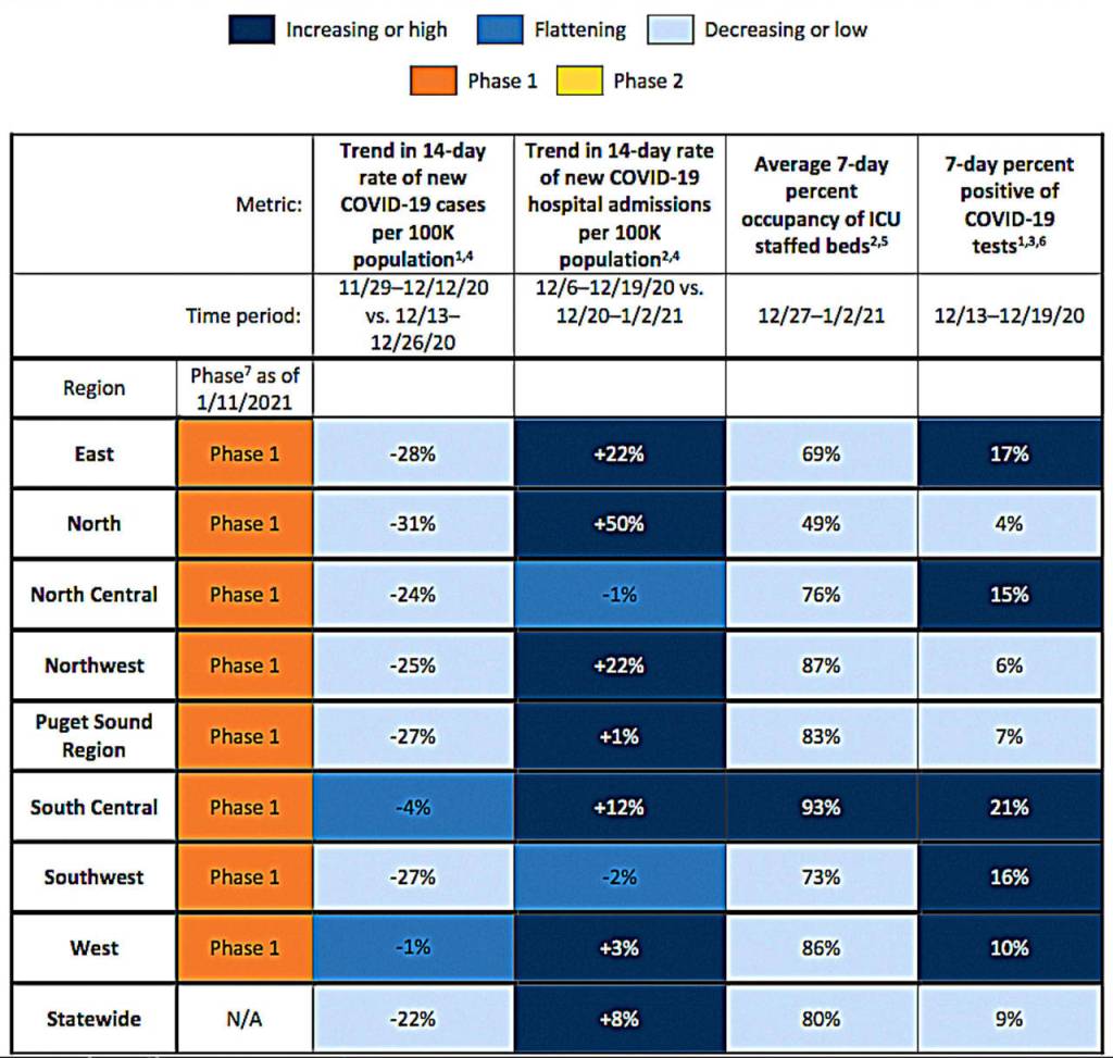 None of the state’s regions qualified to move into Phase 2 in Friday’s report and the state remains in Phase 1.