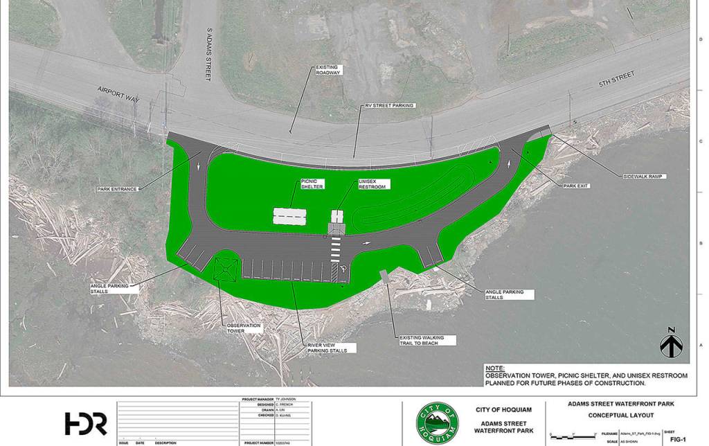 The City of Hoquiam plans to make a formal call for bids this winter to construct a new waterfront park and scenic view point on a vacant piece of city property on Grays Harbor at the intersection of Adams and the 5th Street Extension.