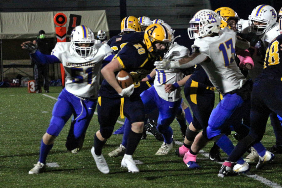 “(Aberdeen assistant coach) Clarence Sawyer saw that the Rochester defense was so geared at stopping all of our dives through the middle that they were over-committing and blitzing linebackers. That was leaving them out of position,” Aberdeen head coach Todd Bridge said. “So when we were running a sweep, there were cutback lanes that were bigger than life. Clarence just stuck with it and kept doing it until they stopped it, and they never stopped it.”