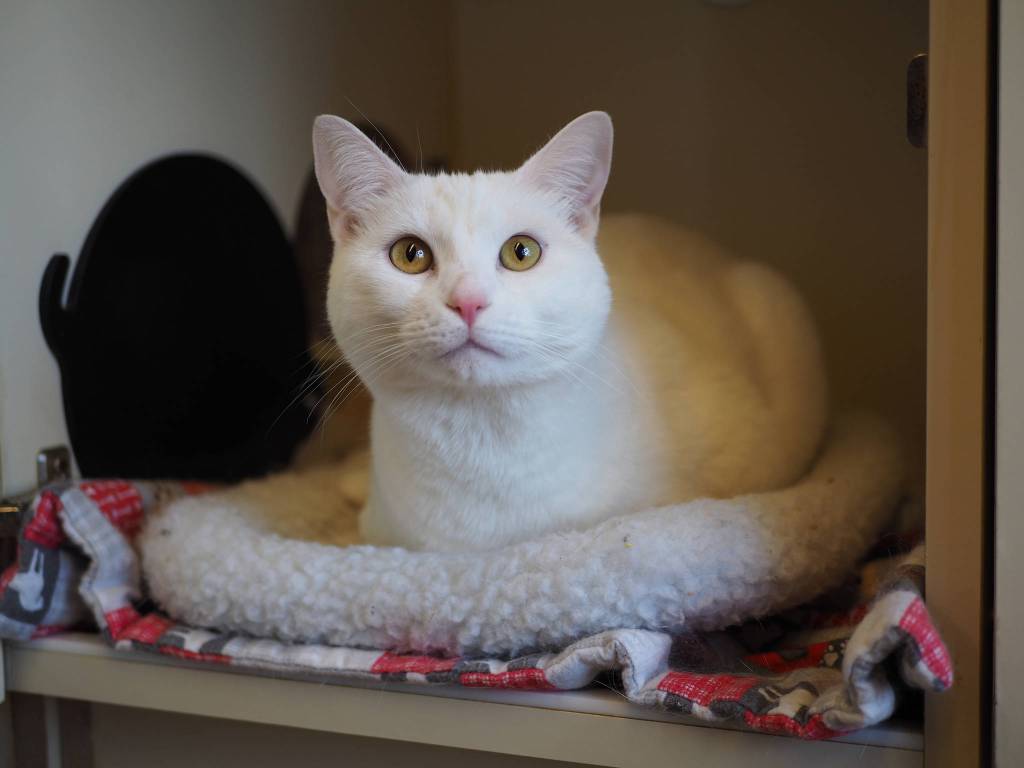 Just when you thought winter was over and done, here’s one last snowball. Zella is a lovely 18-month-old, pure-white kitty. Her lemon-lime eyes are exceptional enough to swim in. Her skittish nature makes her a good candidate for a home without young children or other distracting elements. Zella is spayed and up to date on her vaccines. She is available for adoption through PAWS of Grays Harbor. They are open by appointment only at this time. Please visit www.pawsgh.org or call 360-533-1141 to fill out an application. You can also find them on Facebook and Instagram. Those 55 and older receive a 20% discount on adoption fees.
