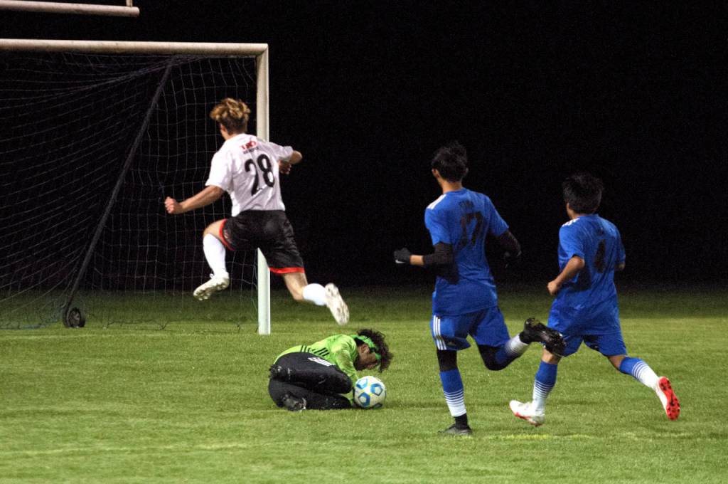 Elma goal keepers Andy Salvatierra and Mak Flores split time in goal to share the shutout victory and only faced one real threat in the match — on a breakaway attempt Flores thwarted late in the game.